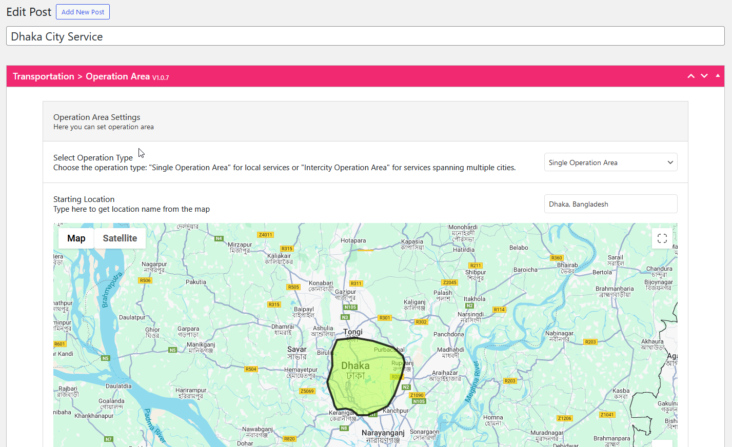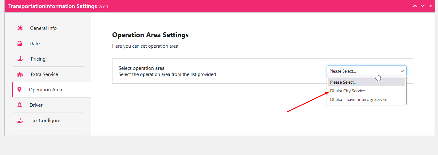 2. Add the title of the operation area services such as “Dhaka City Service”.